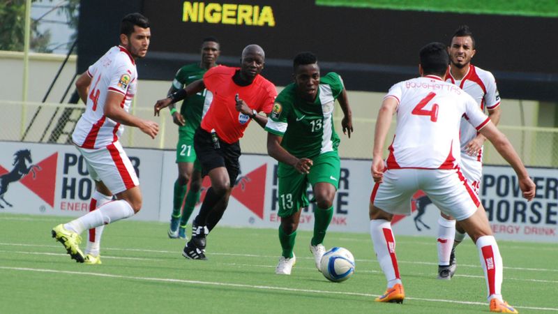 | The Kolanut boy (Chikatara) rumpling the Tunisian defence without mercy. |