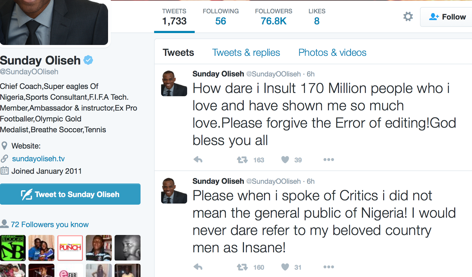 The Super Eagles manager has taken to twitter to offer his apologies to his countrymen, numbering almost 200million, who had taken offence at his recent rant.