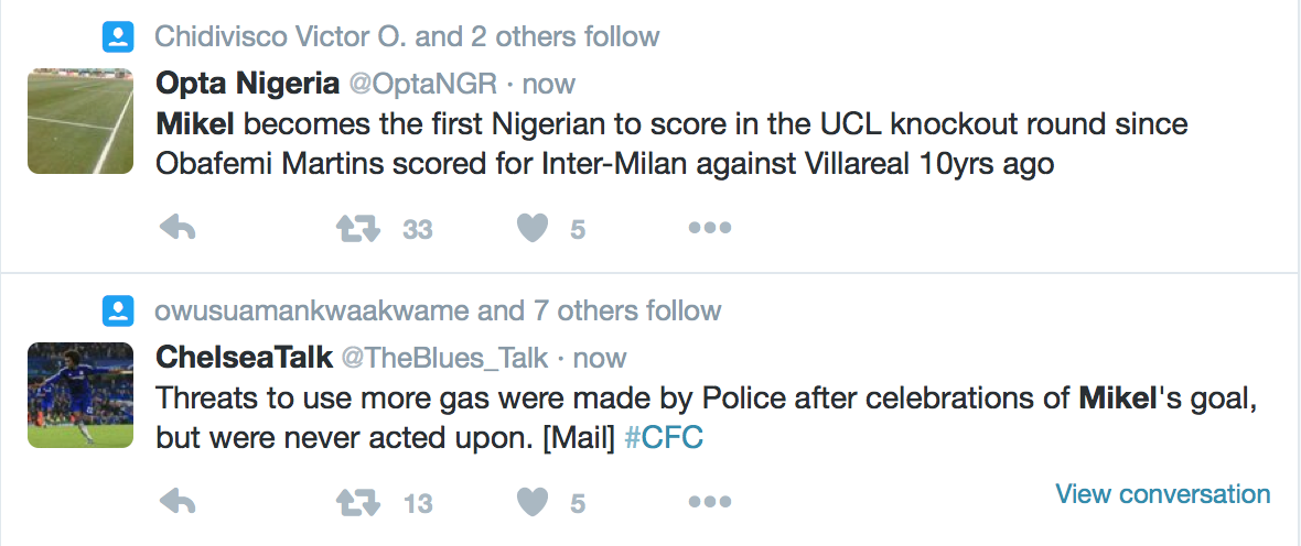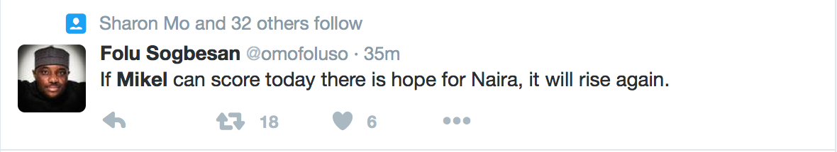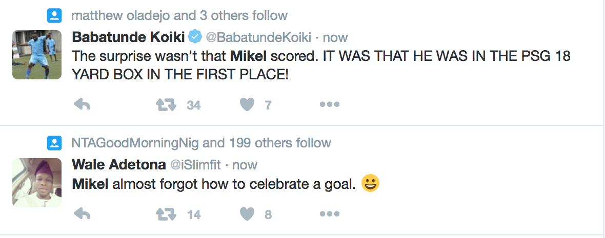 It was the Super Eagles star’s 6th goal in 10 years for the London giants and his celebration was met with even more enthusiasm by users of the microblogging site, Twitter.