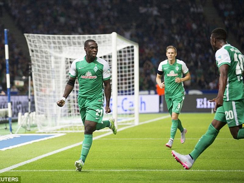 | Anthony Ujah scores a consolation goal for his German club side Werder Bremen |