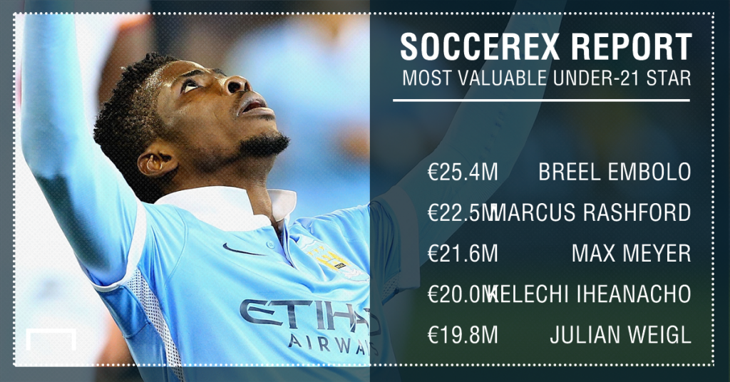 Manchester City forward Kelechi Iheanacho has been voted the ninth Most Valuable Under-21 Player in the world, according to a Soccerrex report from Prime Time Sport.