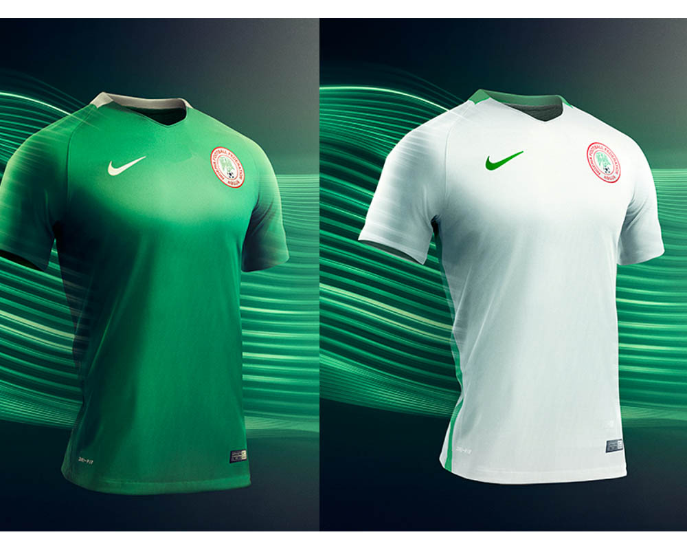 In keeping true to the national colours of Nigeria, the new away kit is white with a green stripe that runs the length of the sides of shirt and shorts, and a green stripe along the back of the collar.