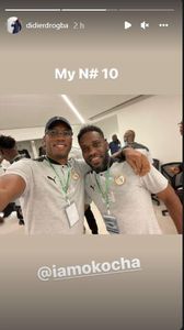 Drogba posted himself and Okocha with the caption ahead of the African legends match against former Senegal players to celebrate the inauguration of the 50,000 world-class Abdoulaye Wade Stadium in Senegal.