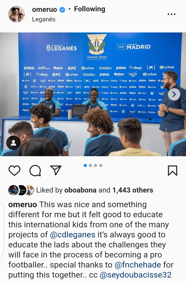 Super Eagles defender Kenneth Omeruo has expressed his pleasure at partaking in Leganes' off-field initiative to educate young footballers from Spain and beyond.