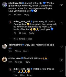 Following his announcement, Mikel has received a lot of plaudits from fans, ex-players – Chelsea teammates, National teammates, and even coaches.