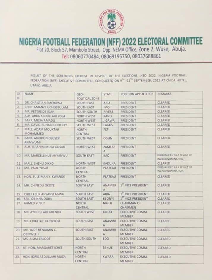 CAF’s Head of Security, Dr Christian Emeruwa is also vying for the NFF Presidency, while former NFF Vice President and experienced football administrator, Amanze Uchegbulam is also amongst the hopefuls.
