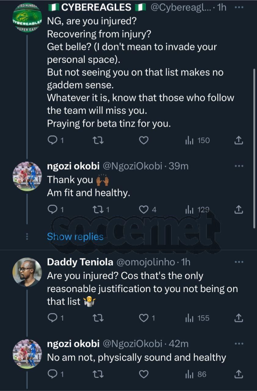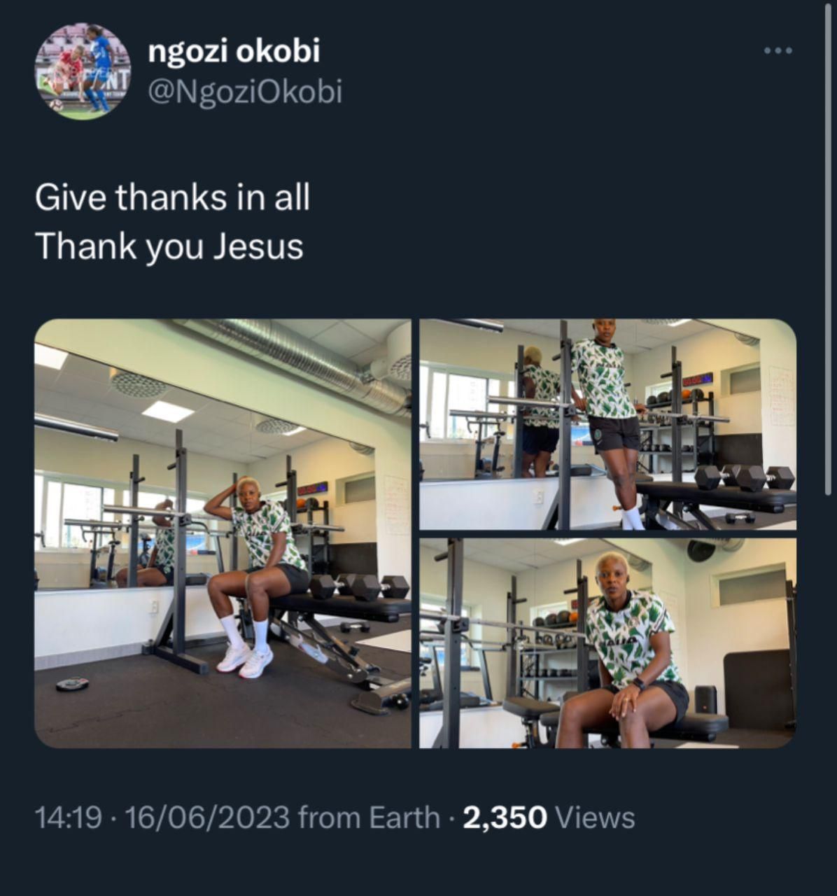 Following her omission, Okobi took to Twitter to express her gratitude for all situations, despite her disappointment at not making the final squad.