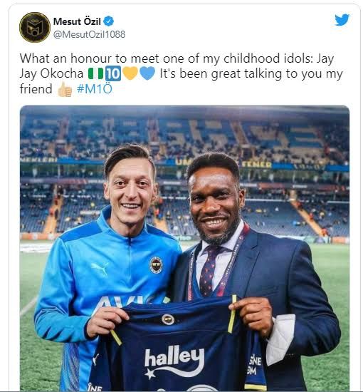 On one of Okocha's recent trips to the club, 25 years after leaving, fans still sang his name, while former Arsenal ace Mesut Ozil was delighted to meet his childhood idol.