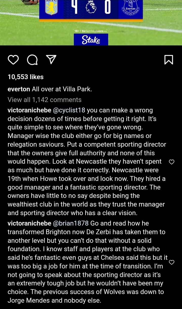 Anichebe's remarks came in response to Everton's Instagram post following their disappointing 4-0 defeat at Villa Park at the weekend.