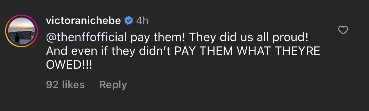 “NFF pay them! They did us all proud! And even if they didn’t. Pay them what they are owed!!!” he wrote.