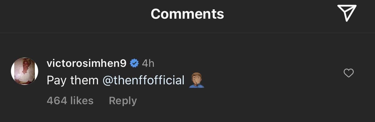 Napoli forward, Victor Osimhen, known for his outstanding performances, conveyed his message succinctly on social media: “Pay them NFF,” echoing the sentiments of many.