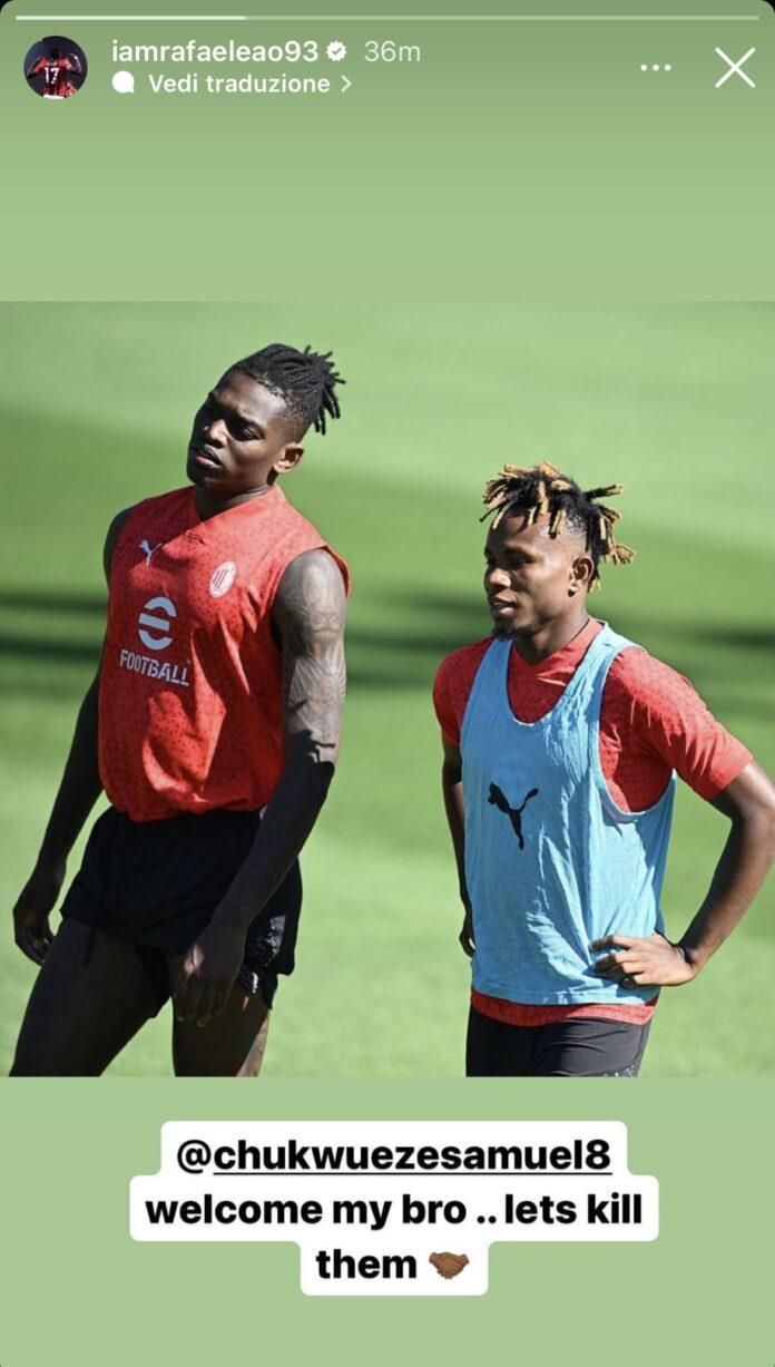In a heartwarming display of camaraderie, Portugal forward Rafa Leao has warmly welcomed AC Milan's latest signing, Samuel Chukwueze, Soccernet.ng reports.