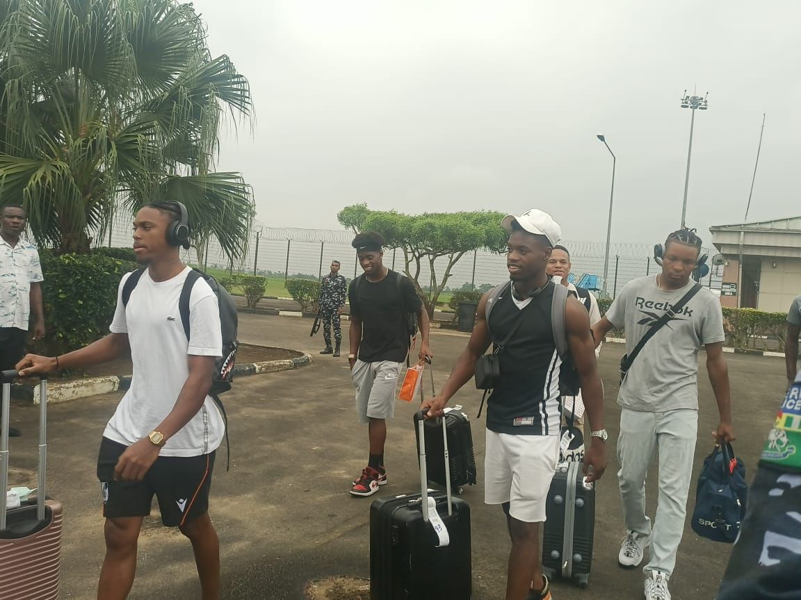 The Falcons and True Parrots Team arrived via the Victor Attah International Airport for the upcoming showdown with the Nigerian national team.