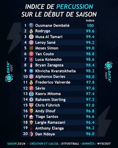 Nigeria-eligible winger Luca Koleosho is 7th on the list, Victor Osimhen's Napoli teammate Khvicha Kvaratskhelia is 9th, Alphonso Davies is 10th, Brighton's Kaoru Mitoma is 13th, while Chelsea forward Raheem Sterling is 14th. Kylian Mbappe failed to make the top 20.