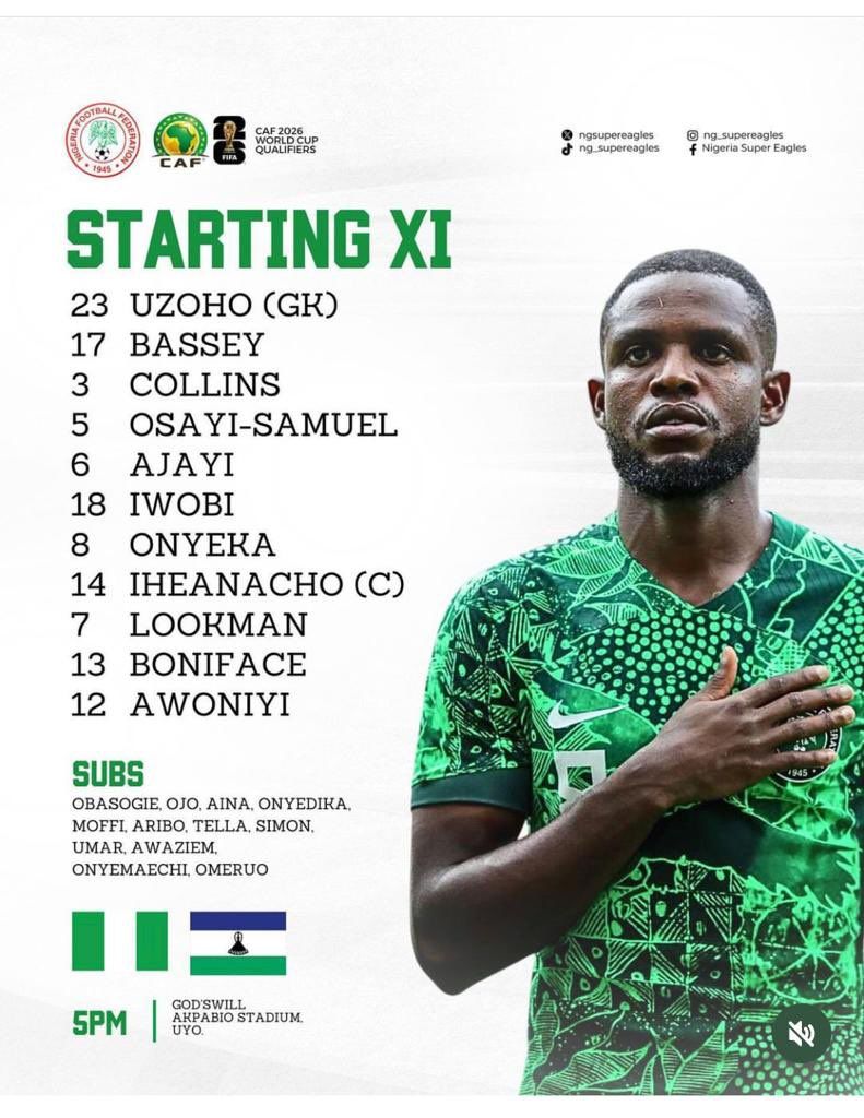 At the same time, Leicester City forward Kelechi Iheanacho will lead the Super Eagles out as captain, as he starts on the right wing where AC Milan's Samuel Chukwueze has enjoyed a monopoly for the past few years.