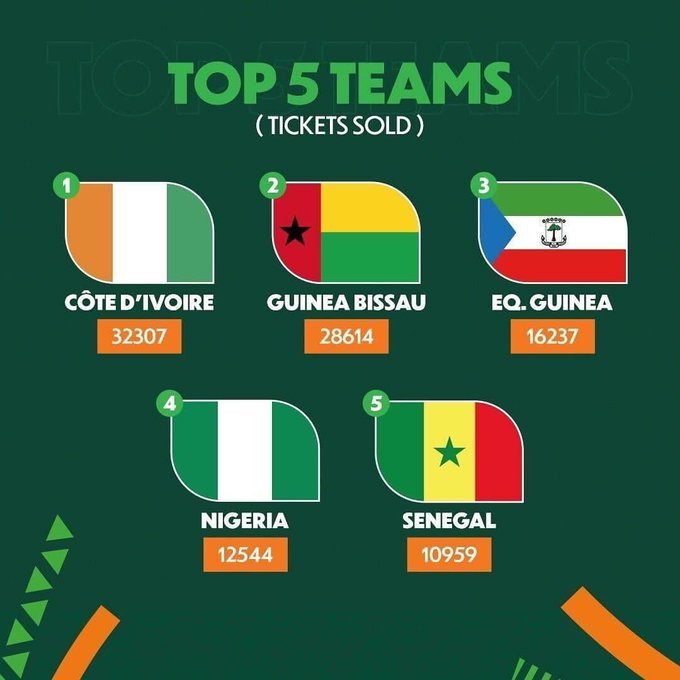 As unveiled on CAF's official X.com account (formerly Twitter), Nigeria clinched the fourth spot in ticket purchases, amassing a substantial 12,544 tickets.
