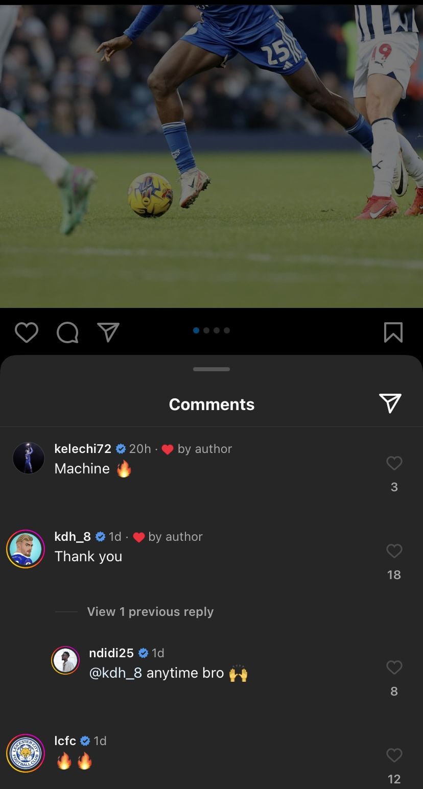 Responding to Ndidi's display, the former Manchester City forward described him with a single word: “Machine,” emphasizing the Nigerian midfielder's excellence. Drewsbury-Hall also expressed gratitude for the assist with a “Thank you” reply.