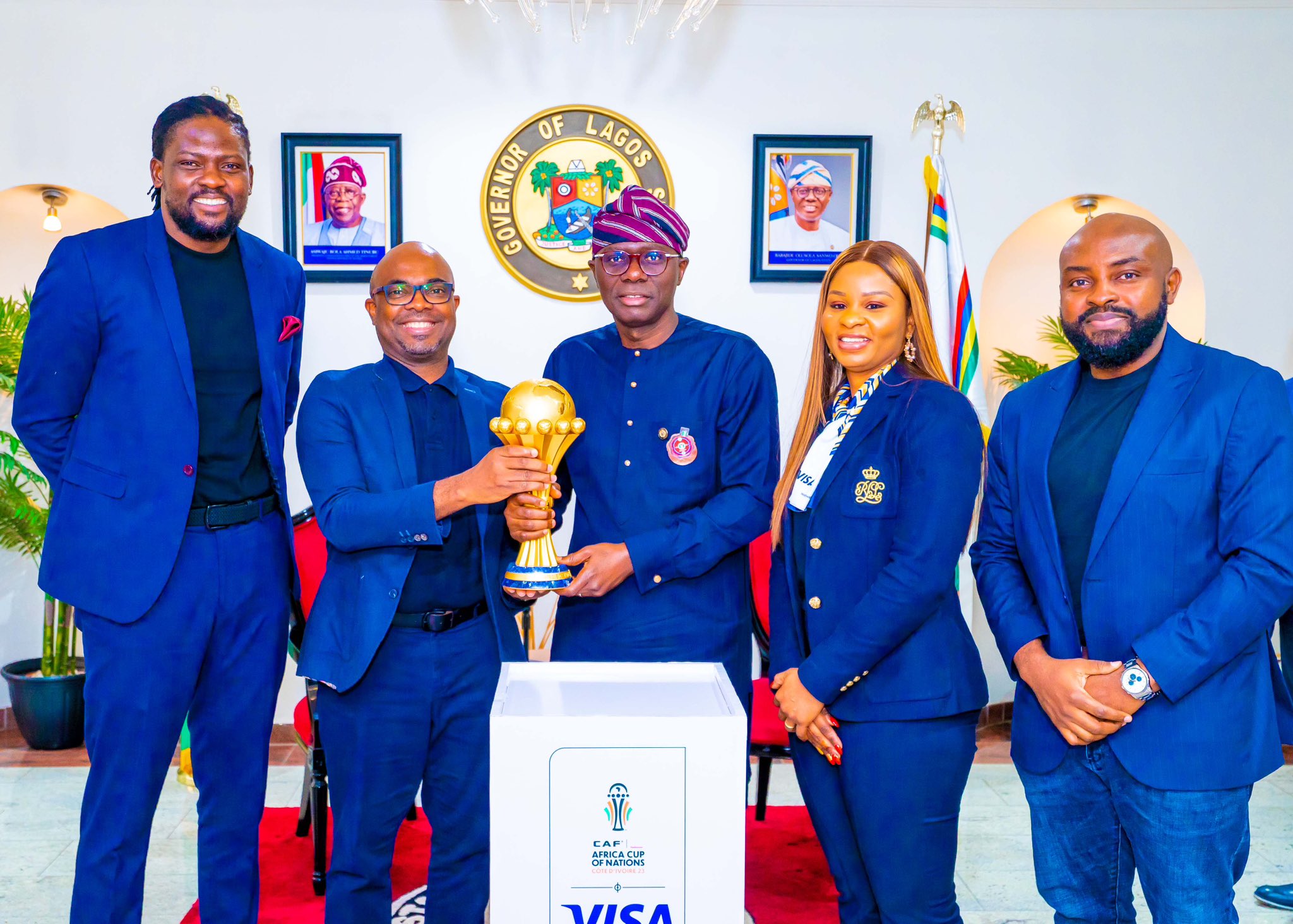 Lagos State Governor Babajide Sanwo-Olu, on Friday, warmly received the African Cup of Nations (AFCON) trophy at the Secretariat, Alausa, Ikeja, Lagos, Soccernet.ng reports.