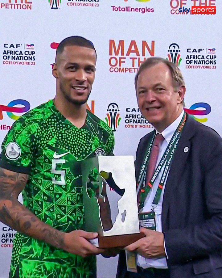 Super Eagles' stand-in captain William Troost-Ekong has been crowned the Best Player of the 2023 Africa Cup of Nations, a distinction bestowed upon him by the Confederation of African Football.