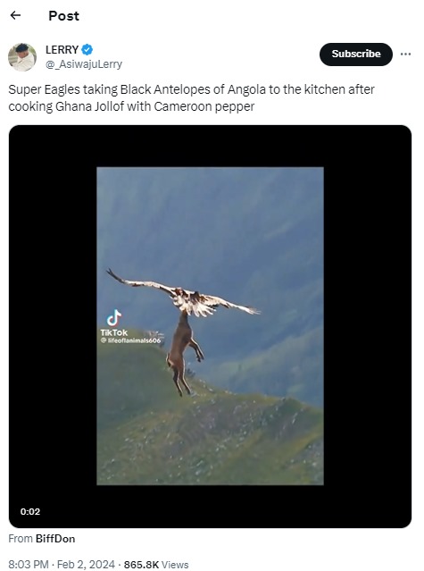 With a Nigerian victory guaranteed after Ademola Lookman’s delicious first-half goal, the Nigerian handle of DStv saw an opportune moment for revenge, as the large Nigerian contingent online immediately responded with a torrent of tweets as a tongue-in-cheek clap-back against their opponents. As one Nigerian X user suggested, it was time to have Ghana Jollof with Antelope meat sprinkled with Cameroon pepper. Other variations of this sentiment flooded the internet.