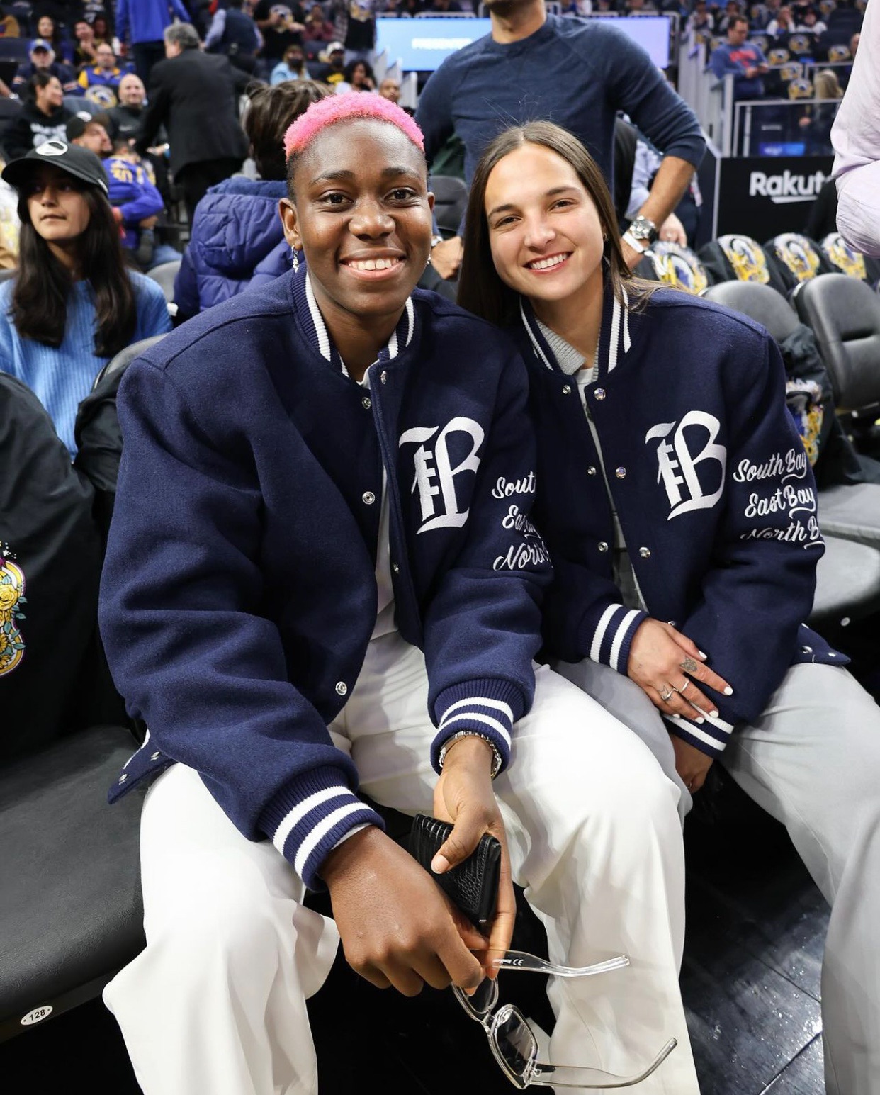 Oshoala and and Castellanos attended the Golden State Warriors’ victorious game against the Milwaukee Bucks at the Chase Center yesterday, donning Bay F.C. jackets to represent their team. They briefly chatted with NBC Sports before taking their courtside seats for the main event.