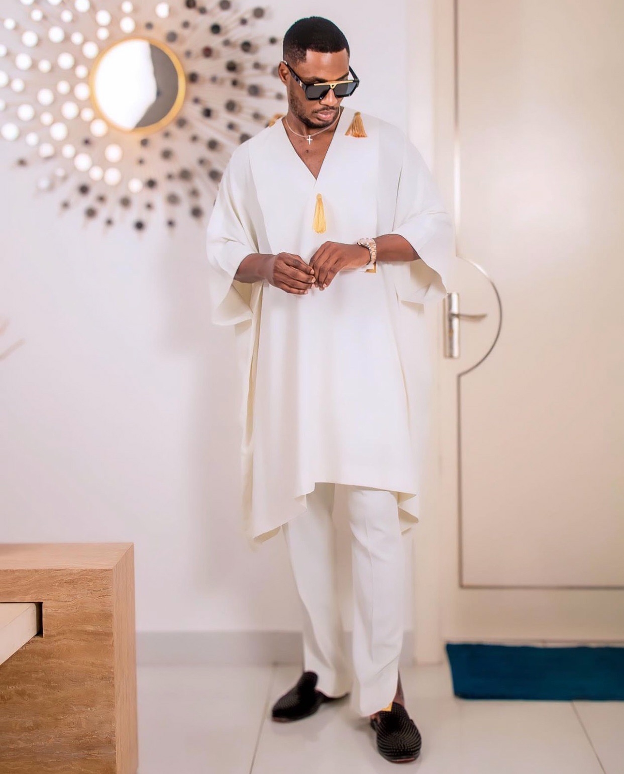 Ndidi is particularly known for his signature two-piece outfits which he effortlessly pairs with designer shoes and accessories, making him a trendsetter amongst Nigerian male footballers.