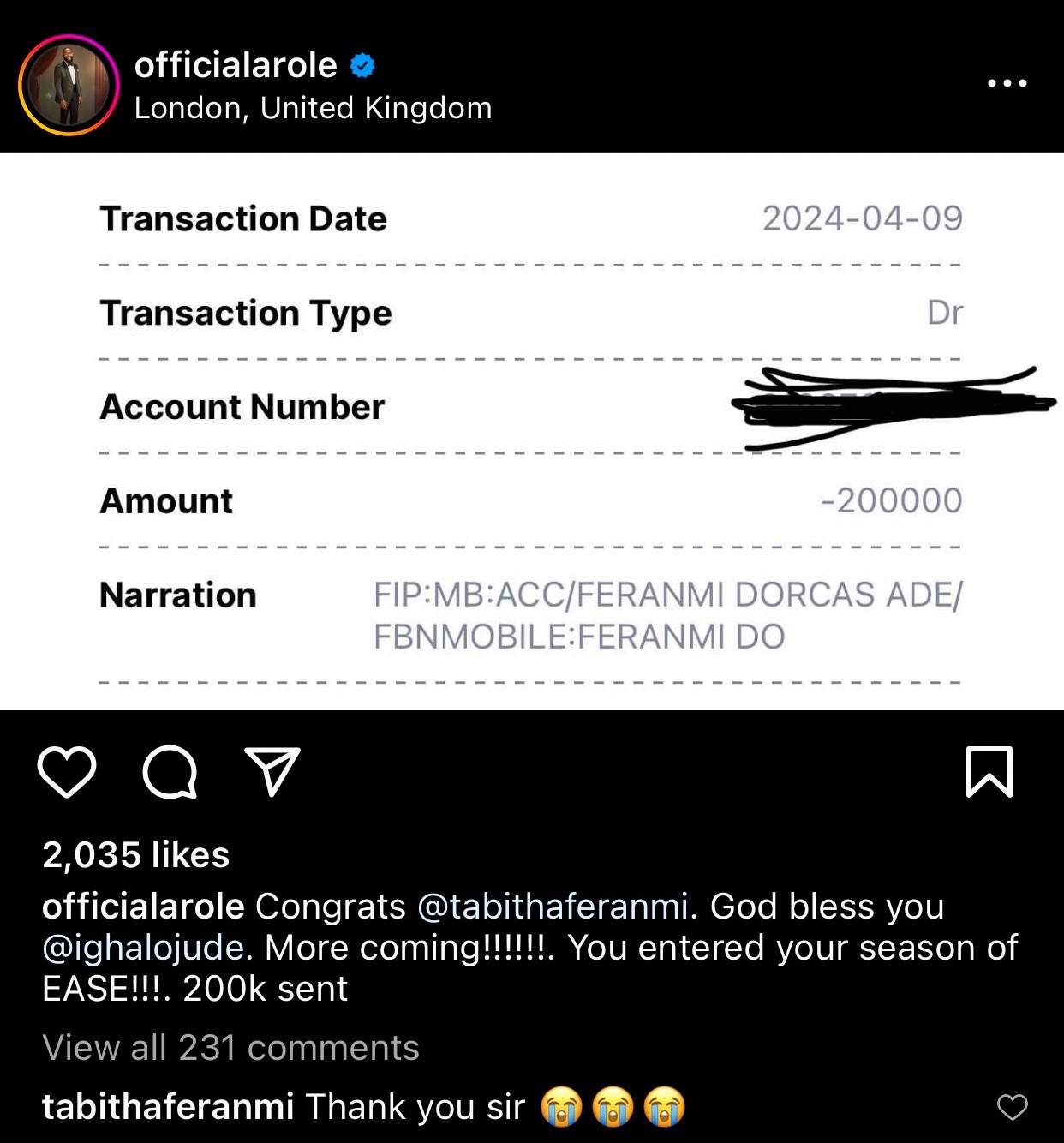 On a personal note, in an act of kindness that is sure to warm hearts, Ighalo has made a monetary contribution to upcoming singing sensation, Tabitha Feranmi.