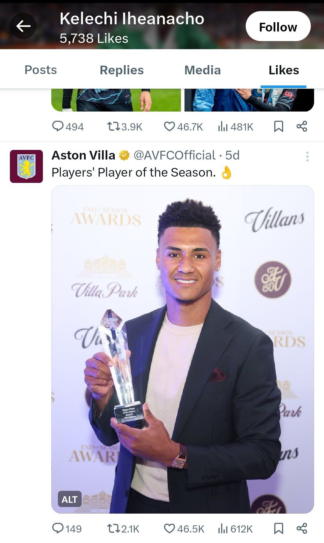 Iheanacho recently liked a post celebrating Ollie Watkins as Villa’s player of the season, adding to the transfer speculation.