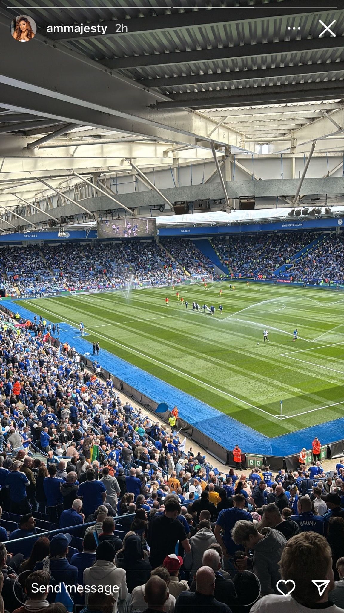 Nigerian football stars Wilfred Ndidi and Kelechi Iheanacho had their wives in attendance at King Power Stadium, cheering them on from the stands. Fortunate and Amarachi shared moments from the stadium on their Instagram stories.