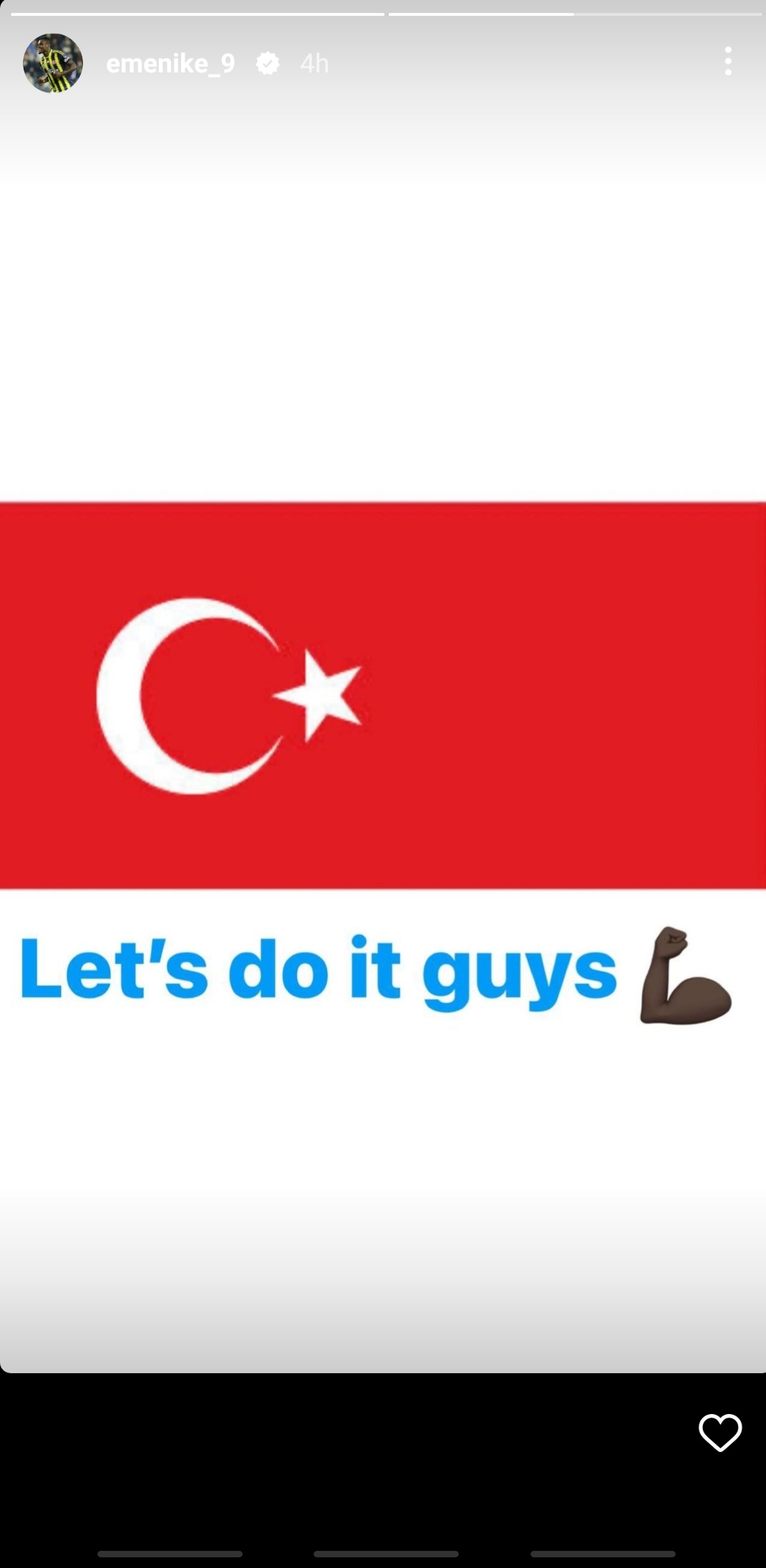 Ahead of the game, former Super Eagles star Emenike, who was the highest goalscorer for Nigeria at the 2013 Africa Cup of Nations has shared a post on Instagram, showing support for Turkey.