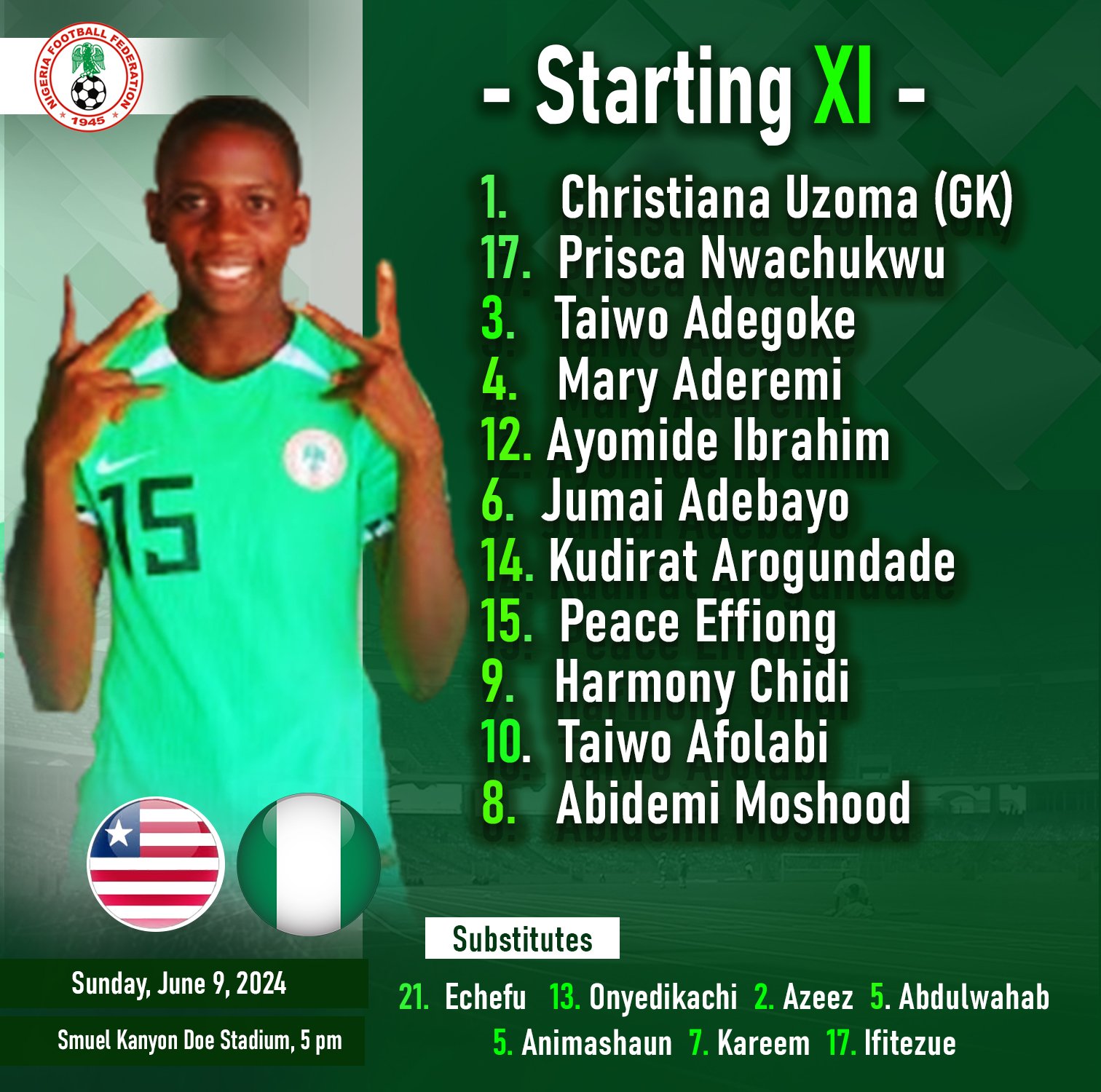 Abidemi Moshood opened the scoring for Nigeria in the 19th minute before the excellent Peace Effiong doubled the advantage ten minutes later.