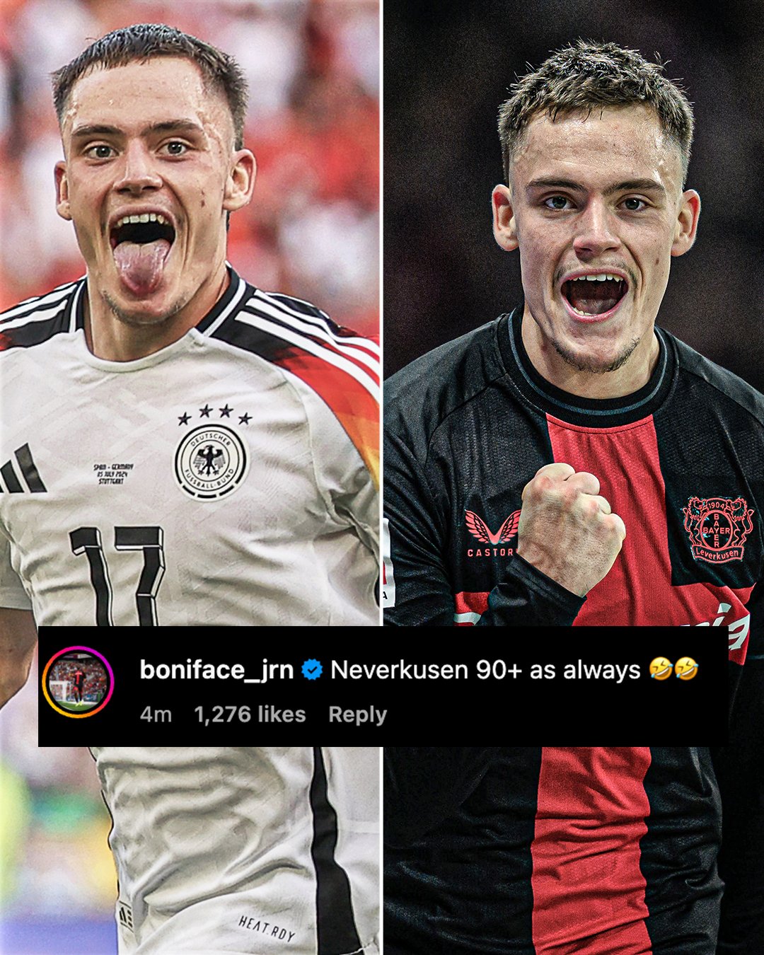 Boniface wrote on his social media page, “Neverkusen 90+ as always”