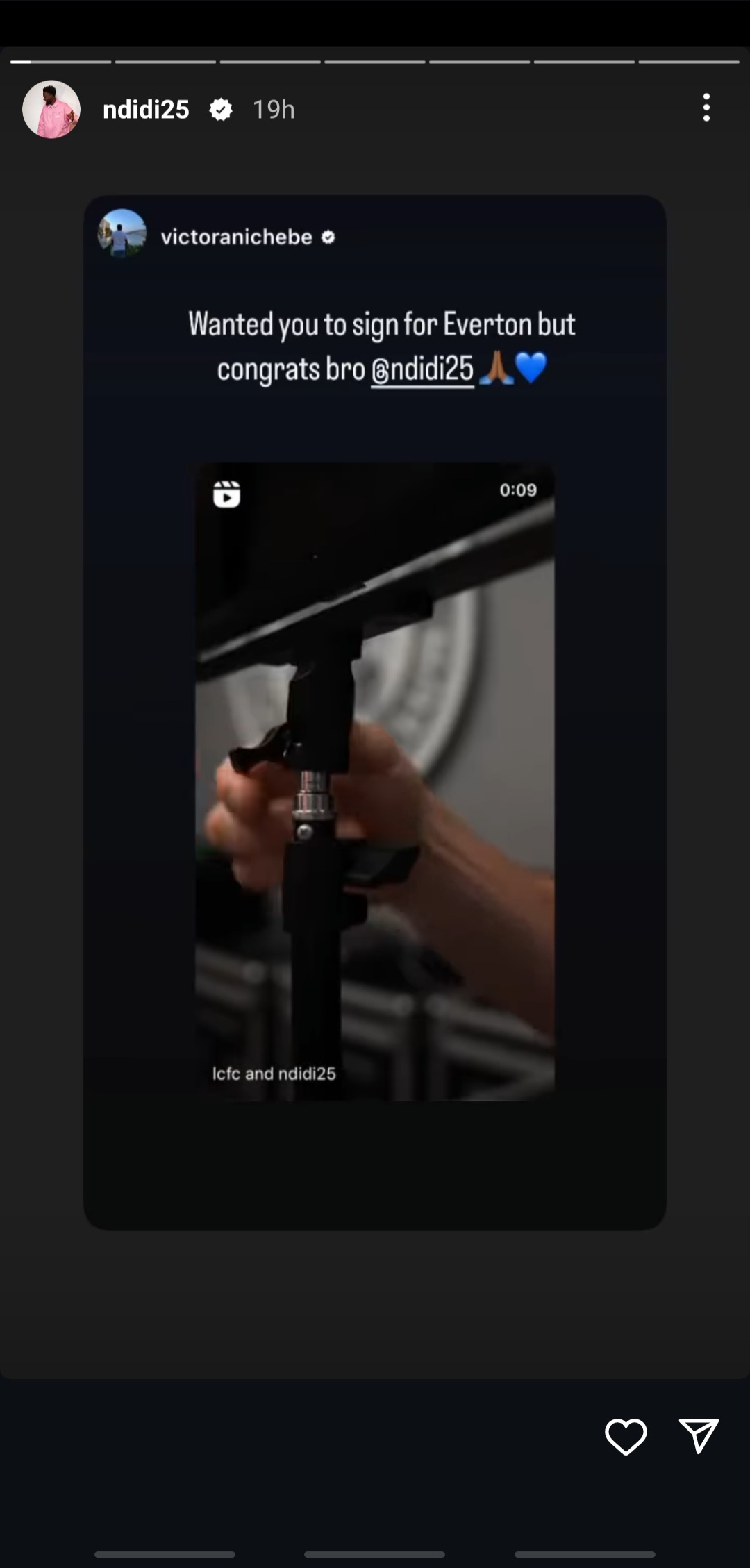 Following Ndidi's new deal, former Nigeria striker Anichebe congratulated him on social media. But the former Everton said he would have loved for Ndidi to join the Toffees instead.