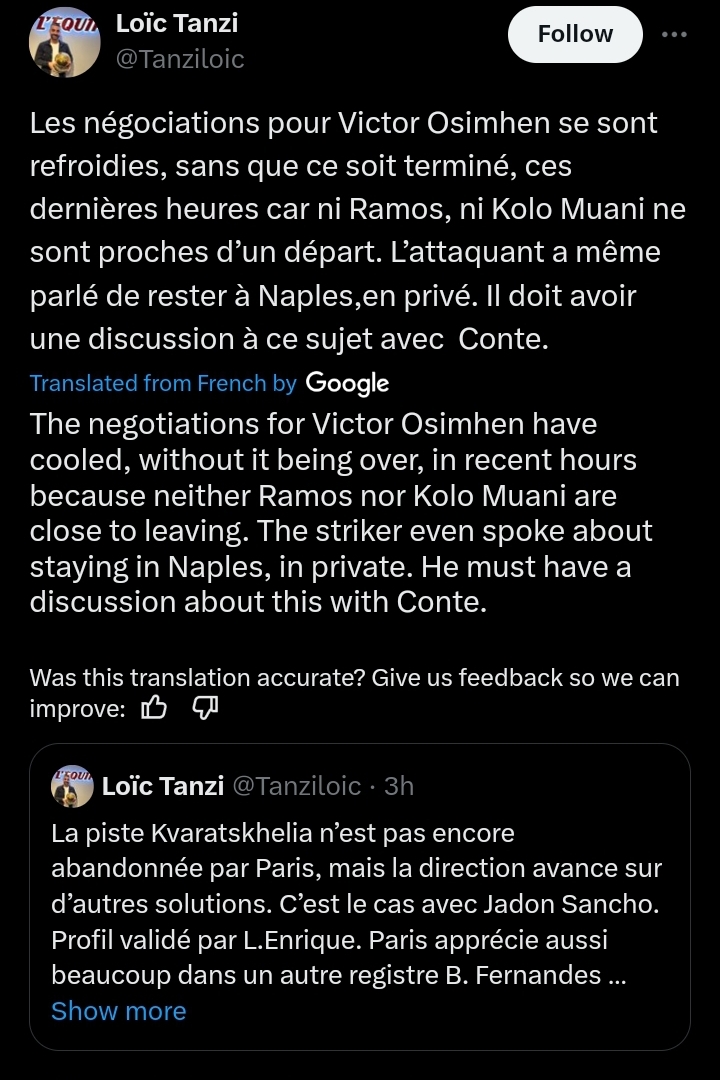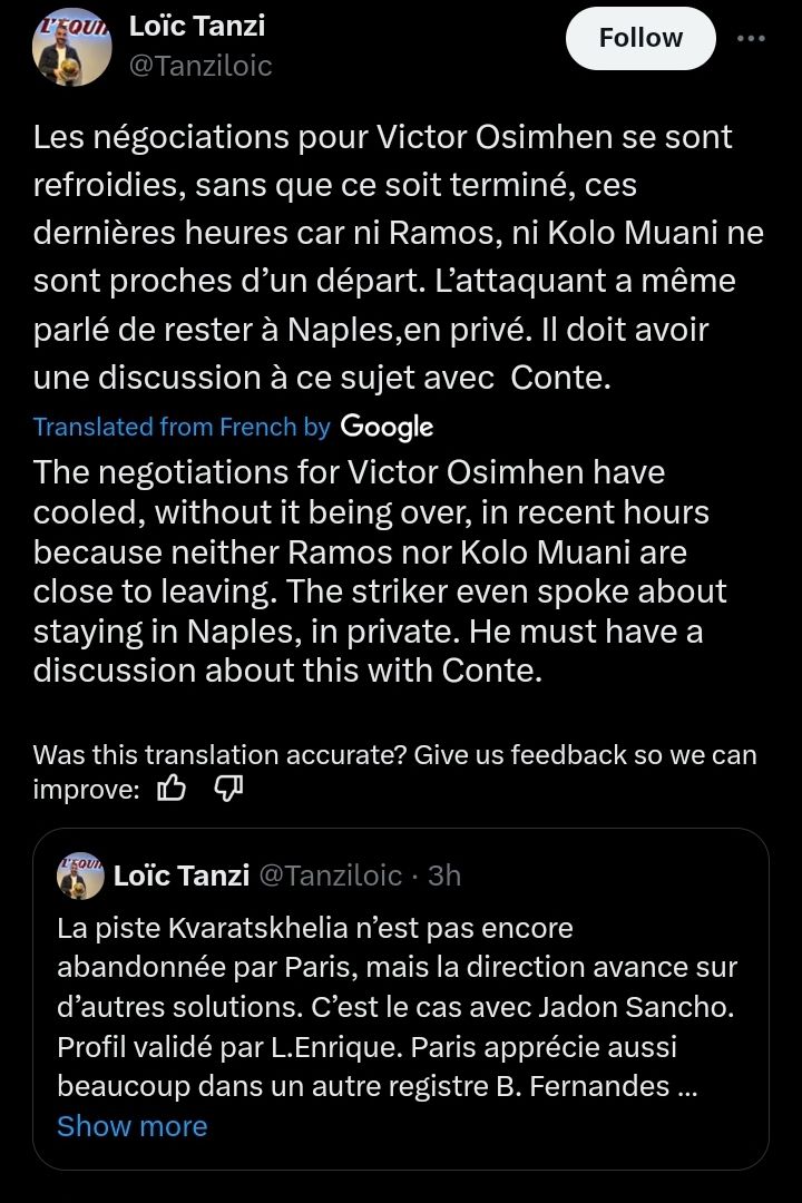 According to French journalist Loic Tanzi, negotiations between PSG and Napoli have cooled in recent hours.