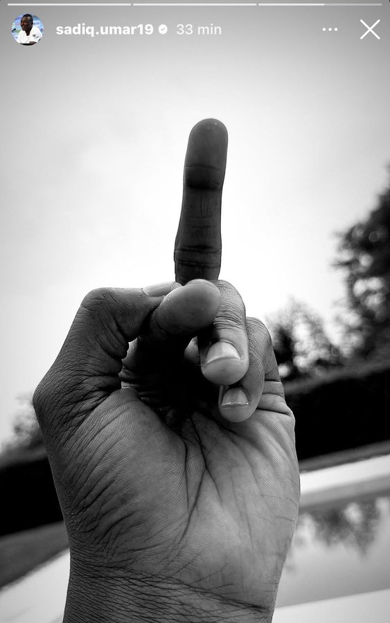 Meanwhile, on sunday, Sadiq caused a controversy after a post on his social media page. The Super Eagles star shared the picture of a middle finger, which generally means “f*** you”.