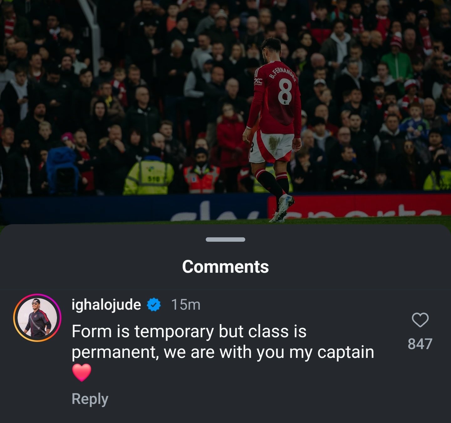 “Form is temporary, class is permanent. We're all with you my captain,” the AFCON 2019 golden boot winner wrote in response to Fernandes' post.