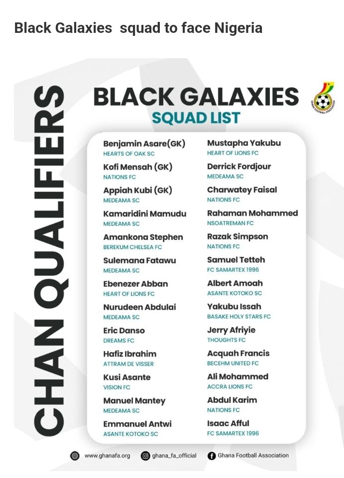 Black Galaxies head coach Mas-Ud Didi Dramani has announced a 26-man squad for the first leg of the 2024 African Nations Championship (CHAN) qualifiers against Nigeria, Soccernet.ng reports.