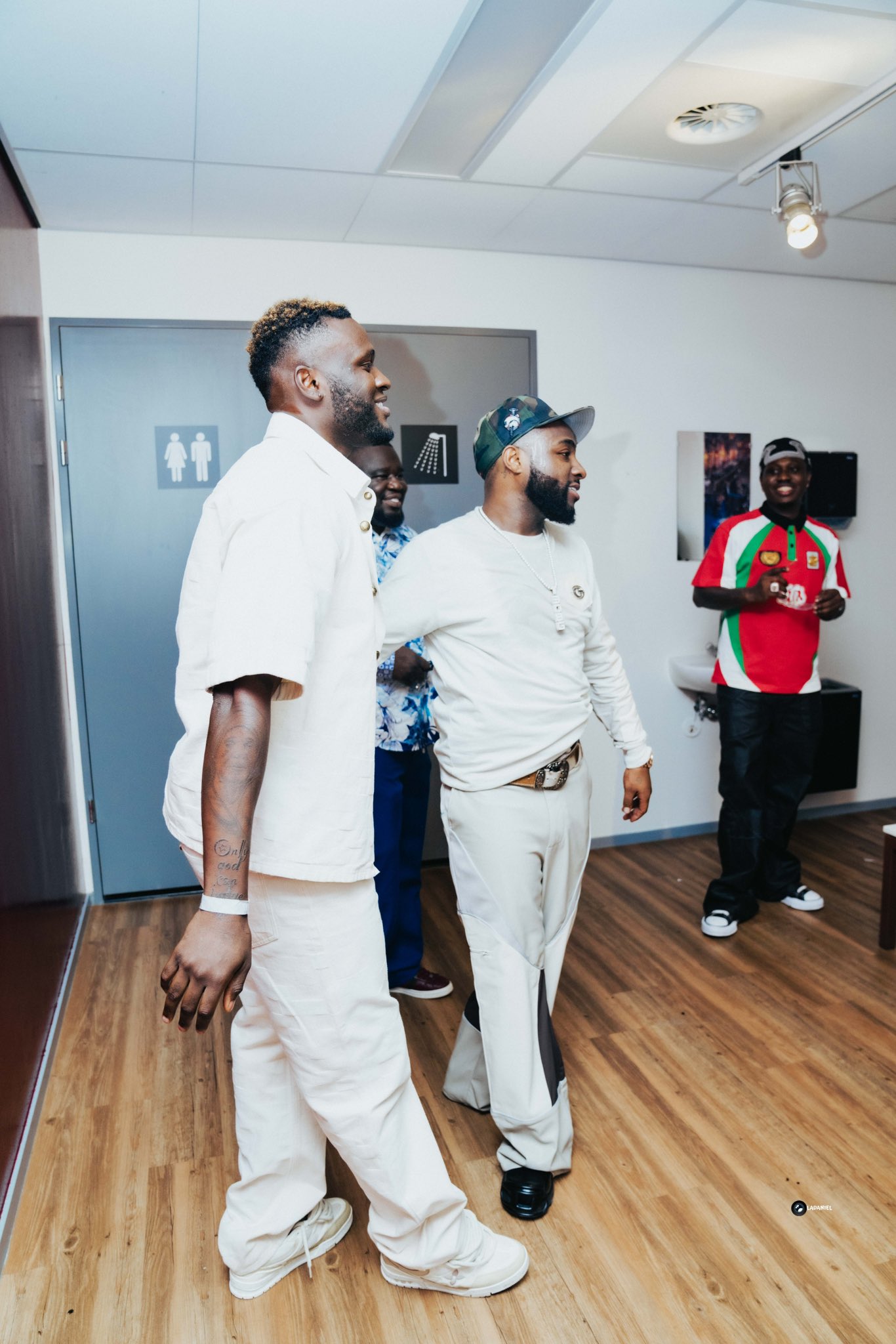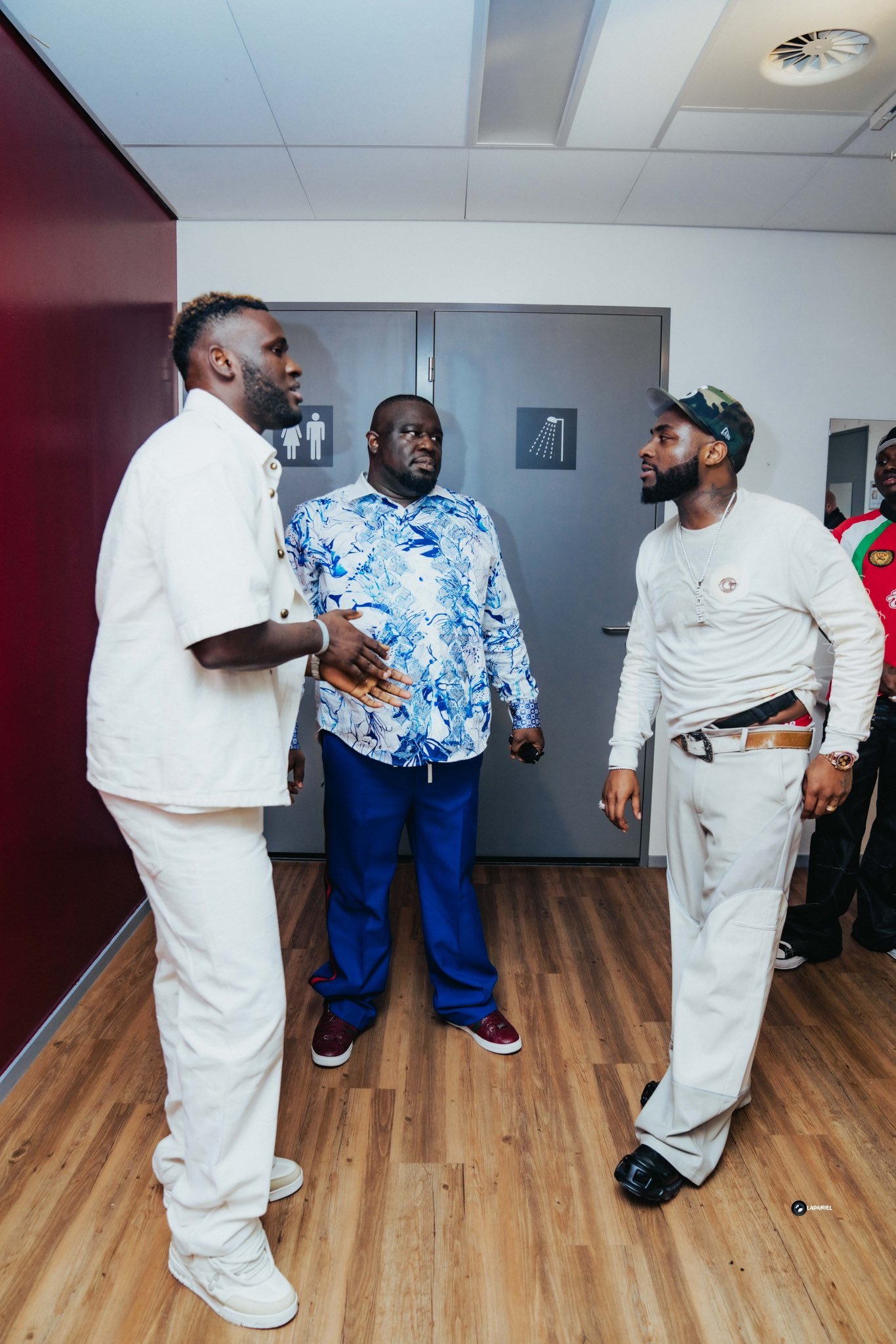 The 23-year-old forward, dressed in a crisp all-white outfit complete with matching sneakers, was pictured alongside Afrobeats superstar Davido and rapper Zlatan, who won acclaim for his 2020 hit single Lagos Anthem.