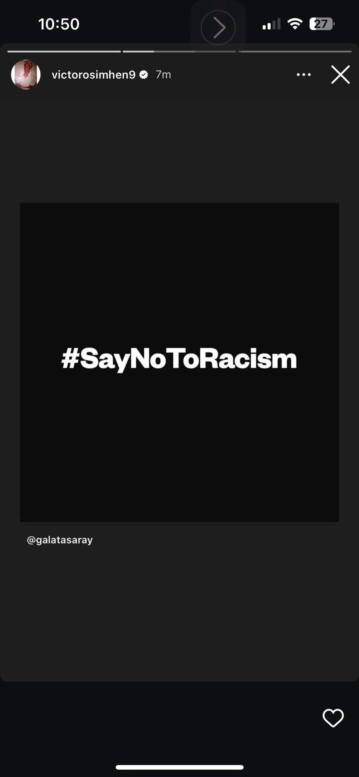 The Napoli-owned striker took to his page to reshare Galatasaray’s official statement condemning Mourinho for allegedly making a racist remark.