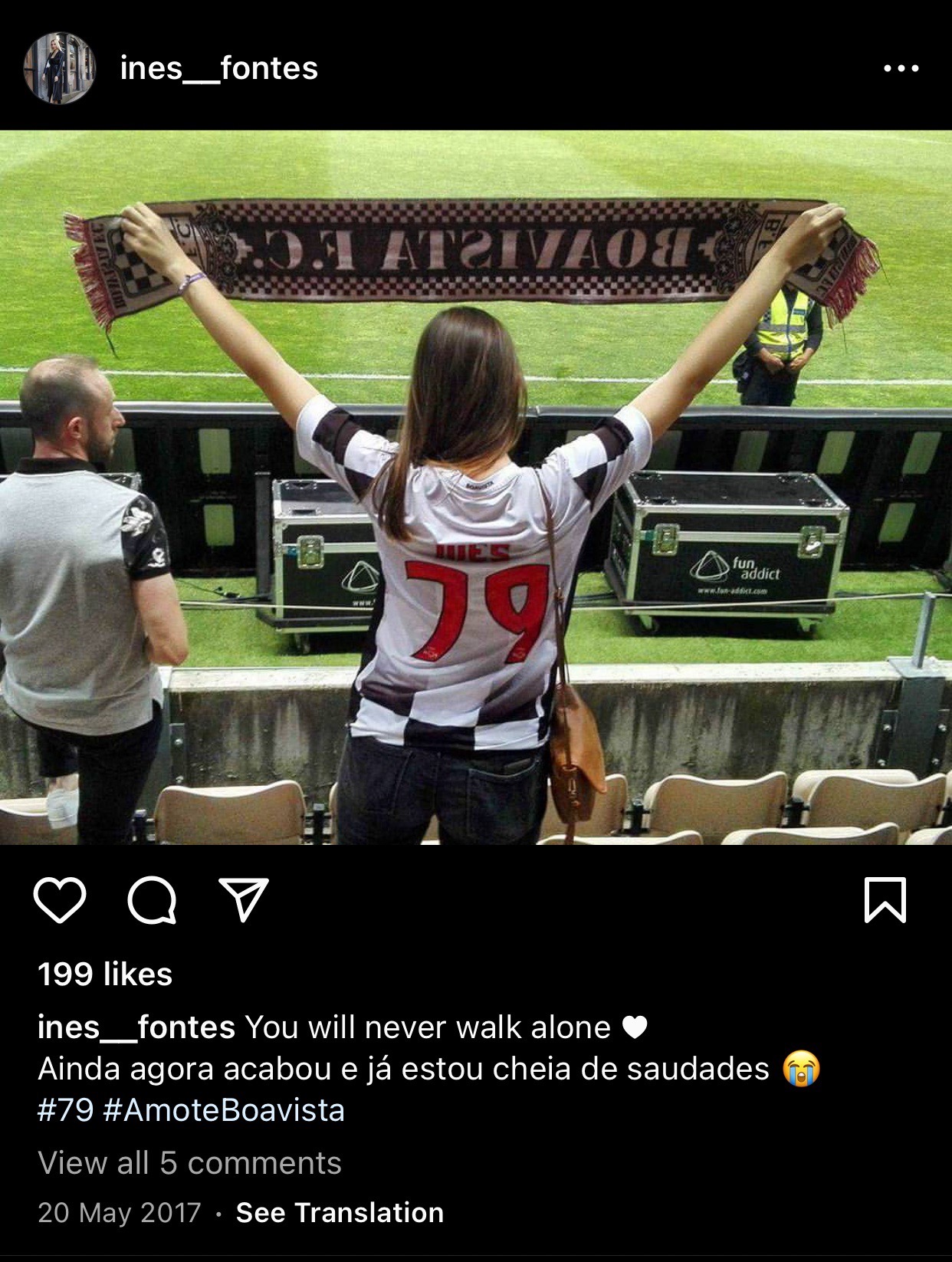 Interestingly, Ines was a Boavista F.C. fan before dating Onyemaechi. She had been attending the club’s matches as far back as 2017—long before the Nigerian defender joined the team.