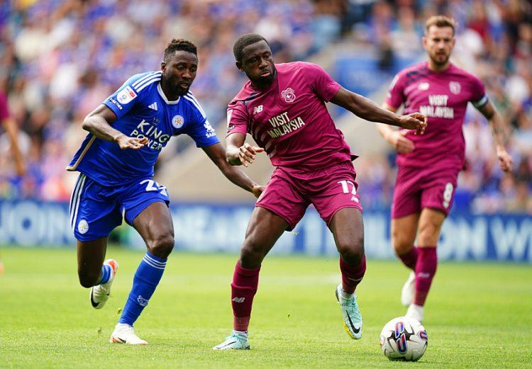 Cardiff City's Jamilu Collins and Leicester City's Wilfred Ndidi (left) battle for the ball during the Sky Bet Championship match at the King Power Stadium, Photo by Icon Sport