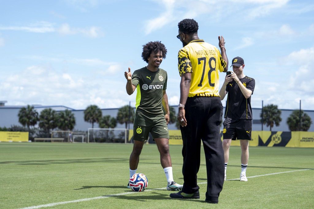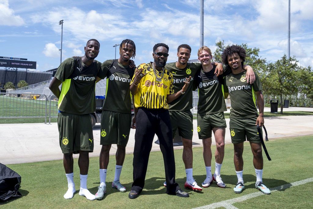 Ahead of Dortmund's clash against Fluminense at the MetLife Stadium in New Jersey, Patoranking visited the Black and Yellows at the Florida Blue Training Centre, primarily owned by Lionel Messi's Inter Miami.
