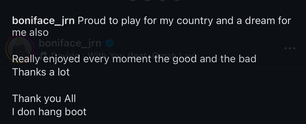 “I don hang boot”: Boniface’s deleted post and the pressure of Super Eagles jersey