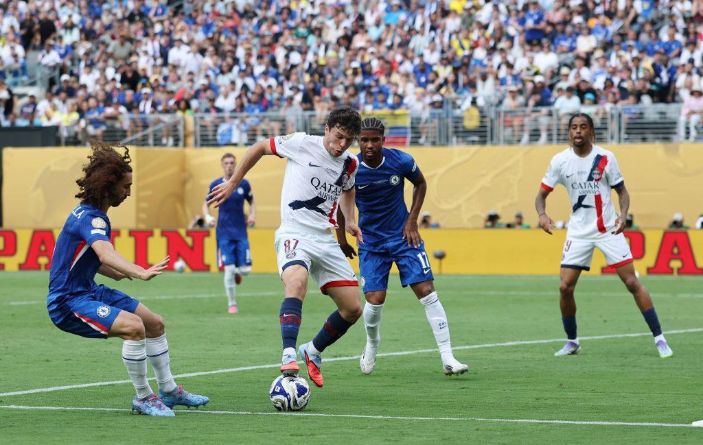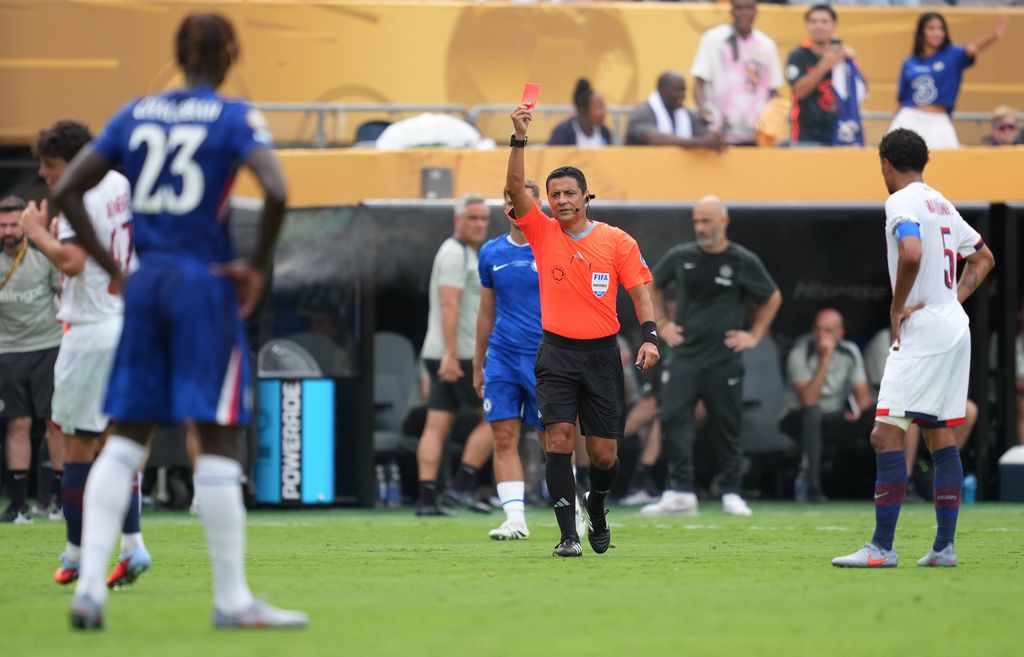 PSG’s Joao Neves is shown a red card for pulling the hair of Chelsea’s Marc Cucurella during the Club World Cup final. pic.twitter.com/XUSElSIspa