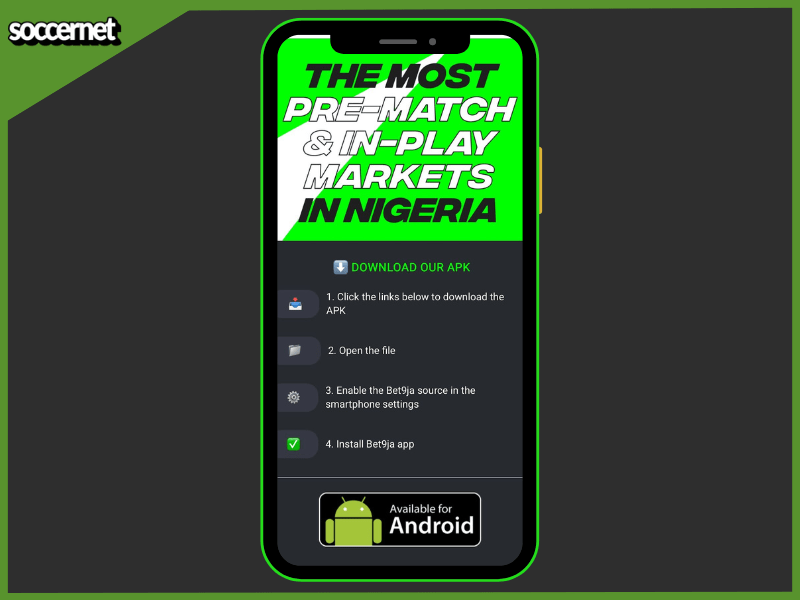 You will be directed to the Bet9ja app download page on Google Play Store. Click the “Install” button to download and install the Bet9ja APK automatically.