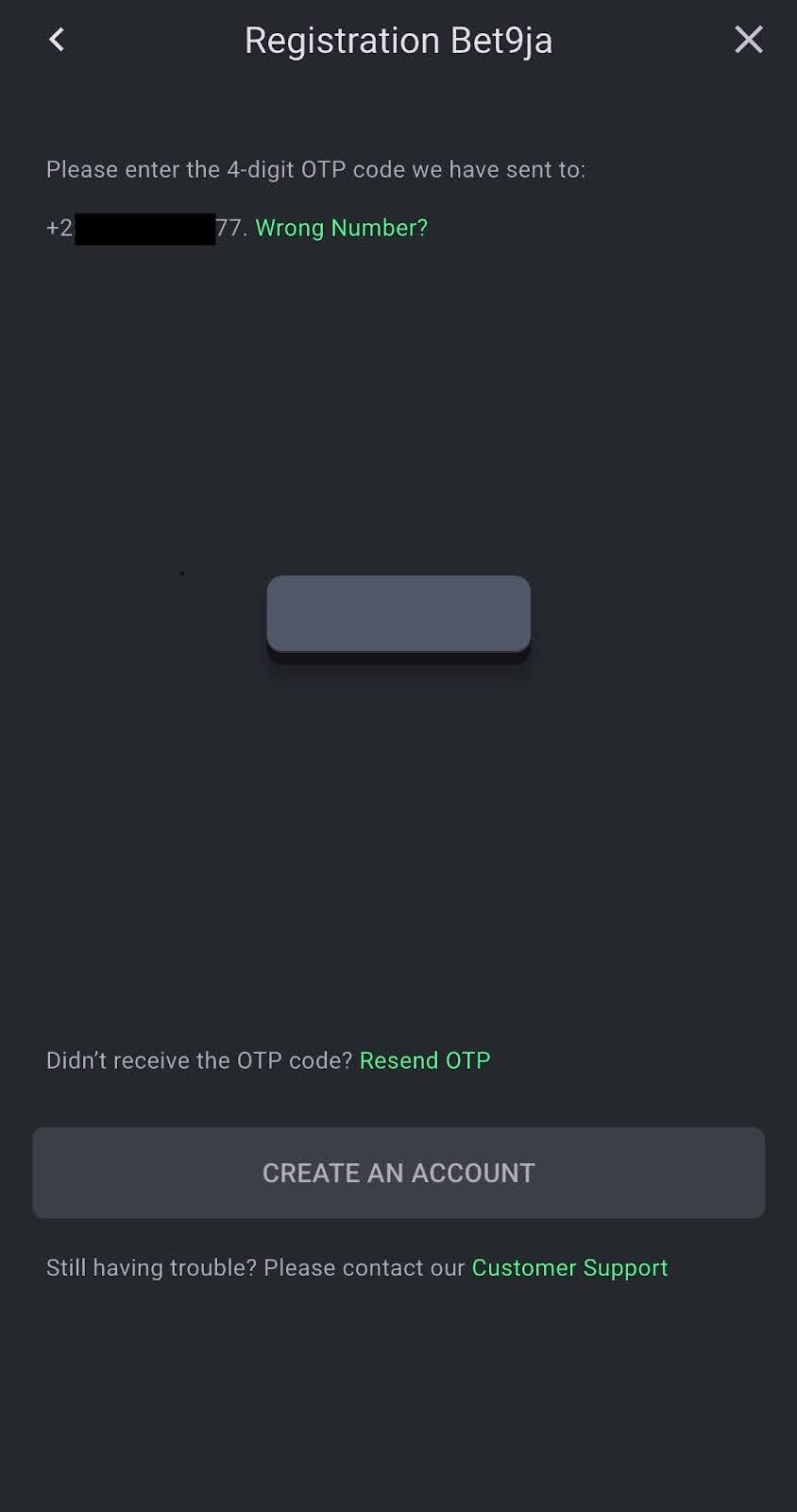 A verification code will automatically be sent to you. Input the code in the field provided on the verification page and click on CREATE AN ACCOUNT.