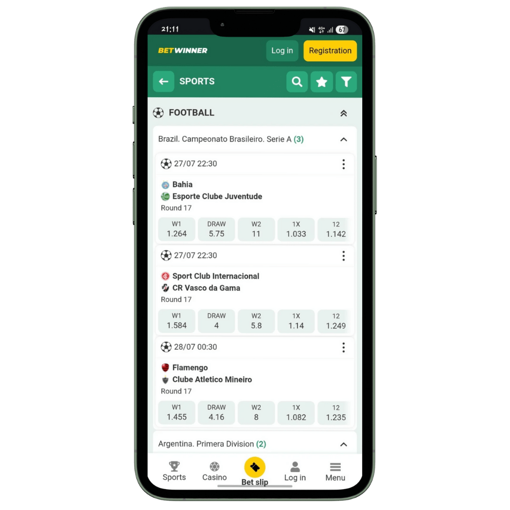 - Find your favourite sports markets: Use the Search tool to look for specific football leagues, championships, or matches. If you’re unsure about which betting options are available, select Football from the sidebar and browse through the bookie’s catalogue. Click (or tap) on the desired outcome to add it to your bet slip. Repeat this step if you want to place several singles or a multi-bet.
