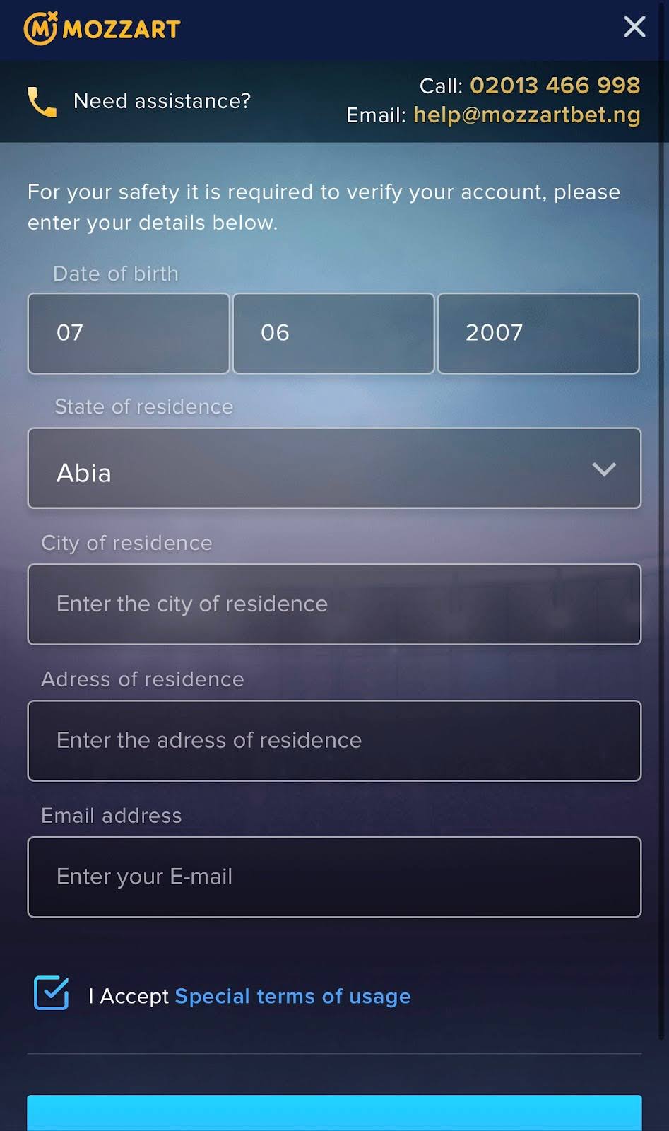 - Account limit: Users can only have one Mozzart bet Nigeria account.