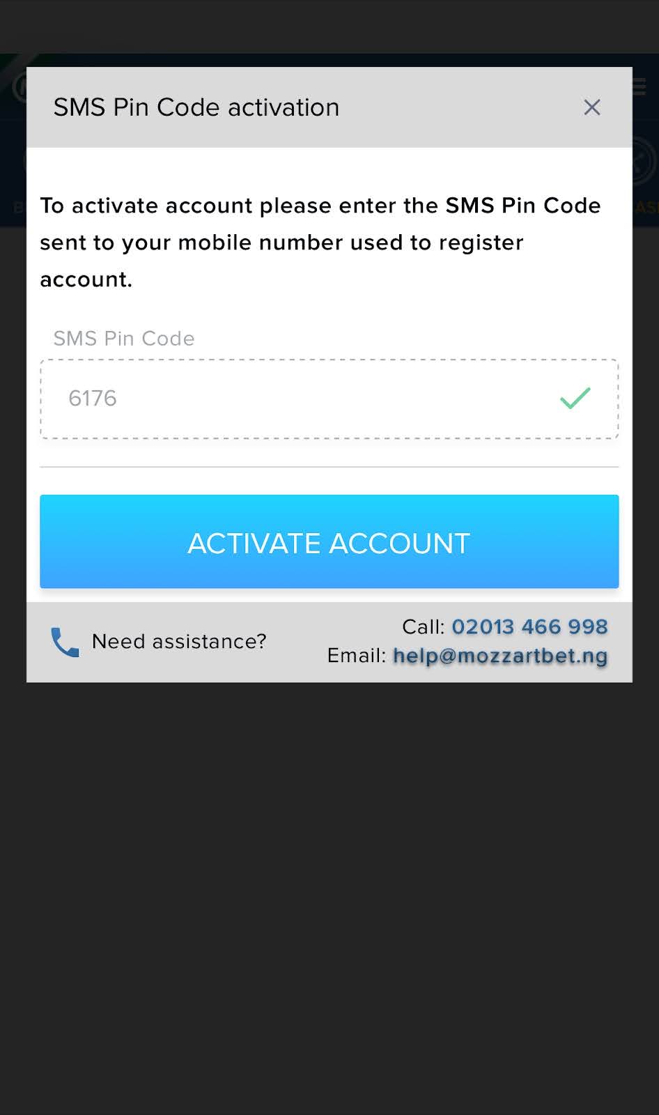 Mozzartbet Nigeria also requires new users to activate their accounts after registering. After registration, I activated my account through the steps below: